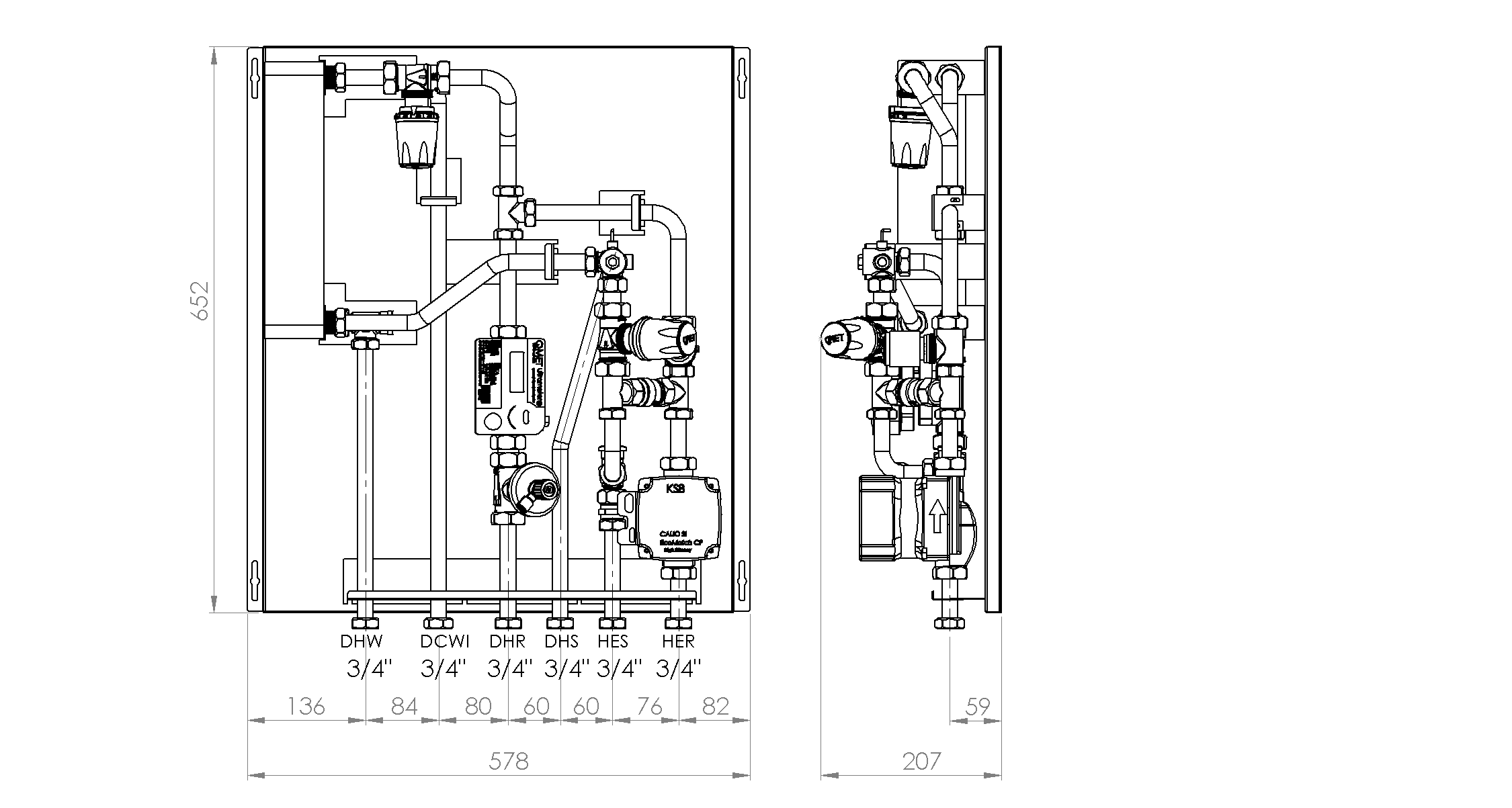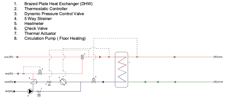 QSUB-TDF60Q Team2025-11-29T17:24:41+03:00 P&IDiagramDimensioned Drawing Genel Specifications Heat Transfer Capacity: 33 – 50 – 65 – 80 kW Maximum Operating Pressure: 16 bar Maximum Operating Temperature: 90 °C Minimum Water Pressure: 0.5 bar Pipe Diameters: Ø 18 mm Connection Size: G ¾” AISI 316L Stainless Steel Piping Technical Specifications